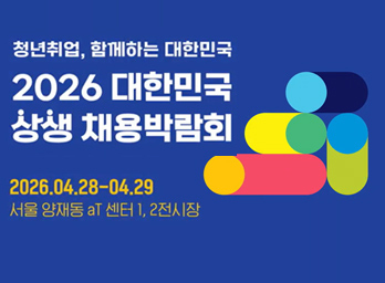 청년취업, 함께하는 대한민국, 2026 대한민국 상생 채용 박람회 2026.04.28.(화) ~ 04.29.(수) 서울 양재동 aT센터 1,2전시장