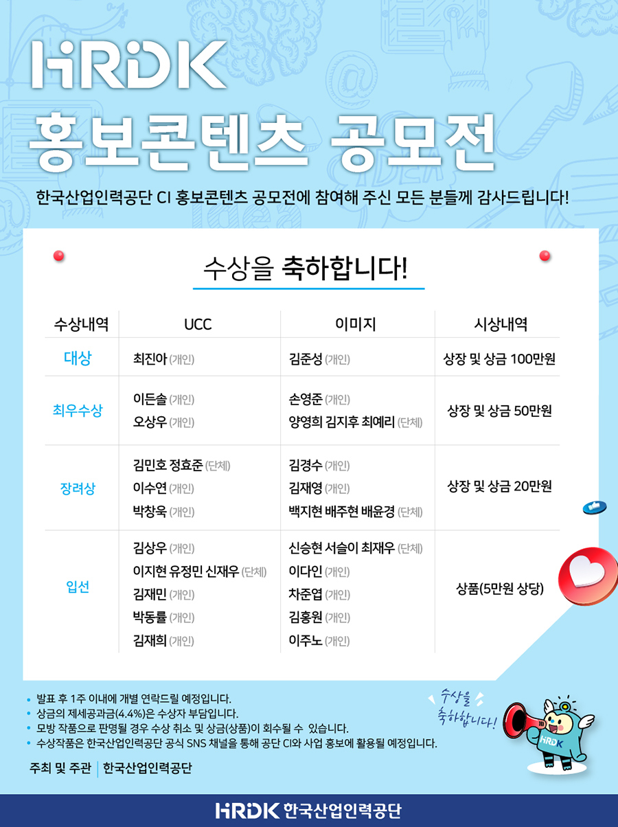 [수상자 발표 ] HRDK 홍보콘텐츠 공모전