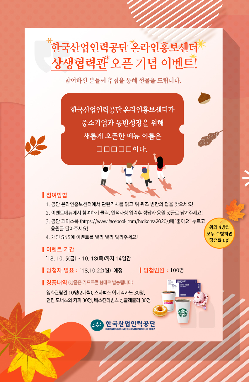<<당첨자 발표!!>> 중소기업과 동반성장을 위해 새롭게 오픈한 메뉴는?