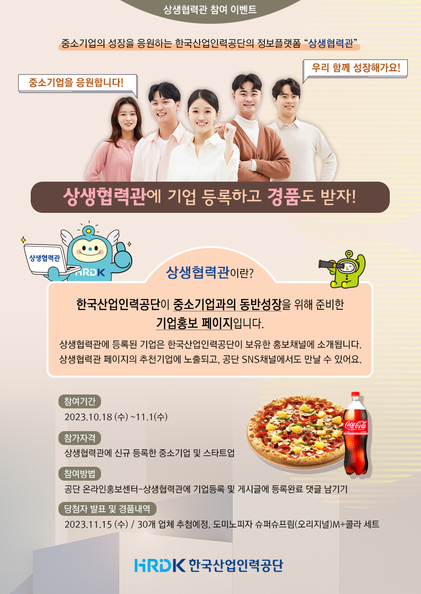 상생협력관에 기업등록하고 경품받아가세요!
