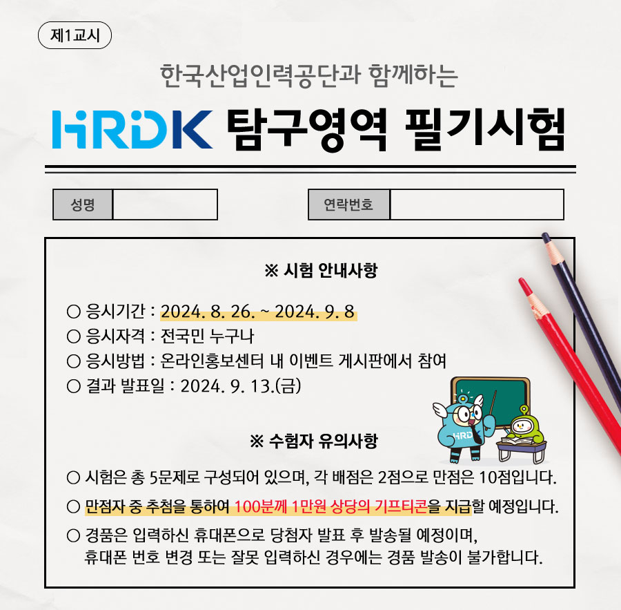 HRDK탐구영역 필기시험 이벤트!!