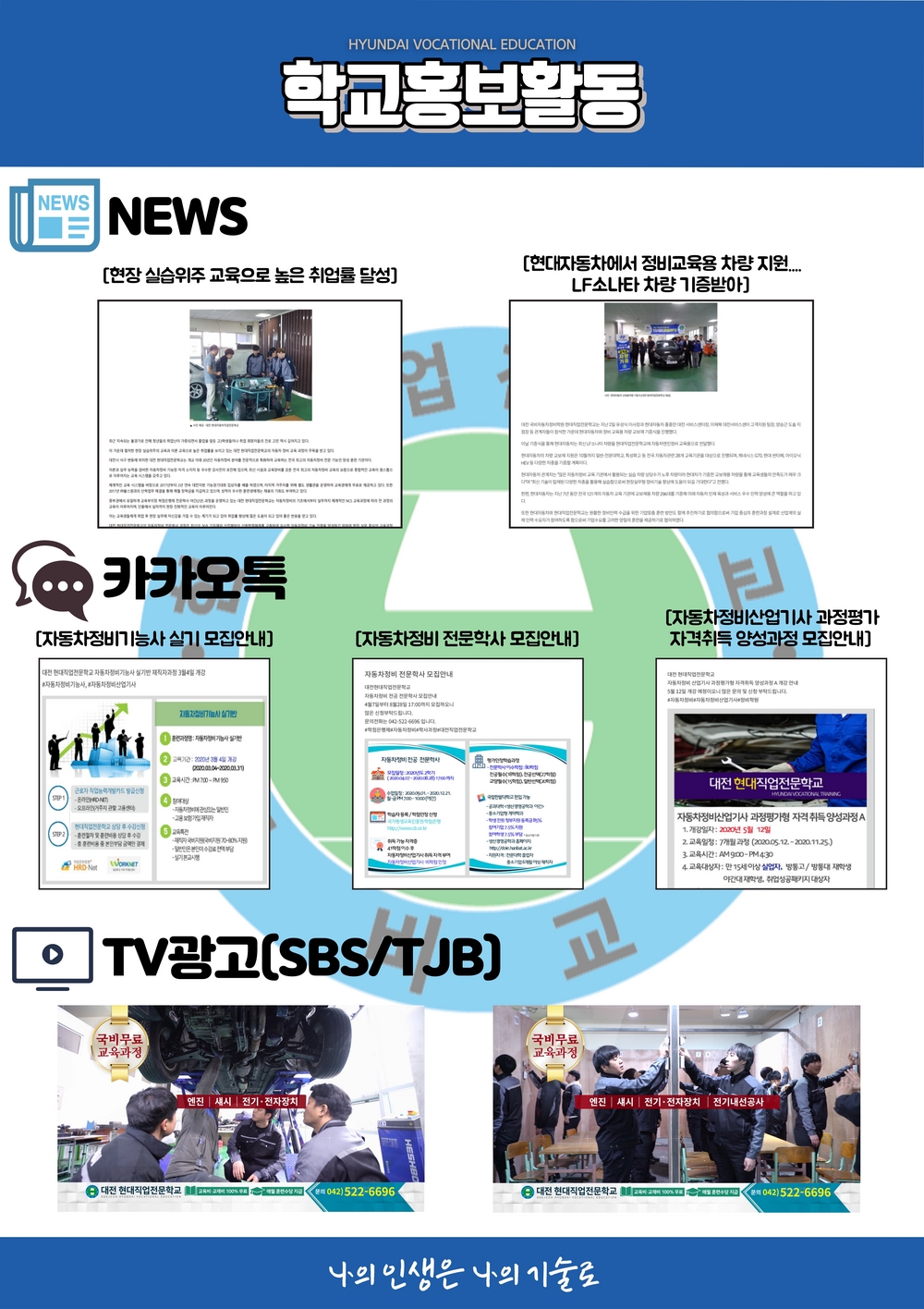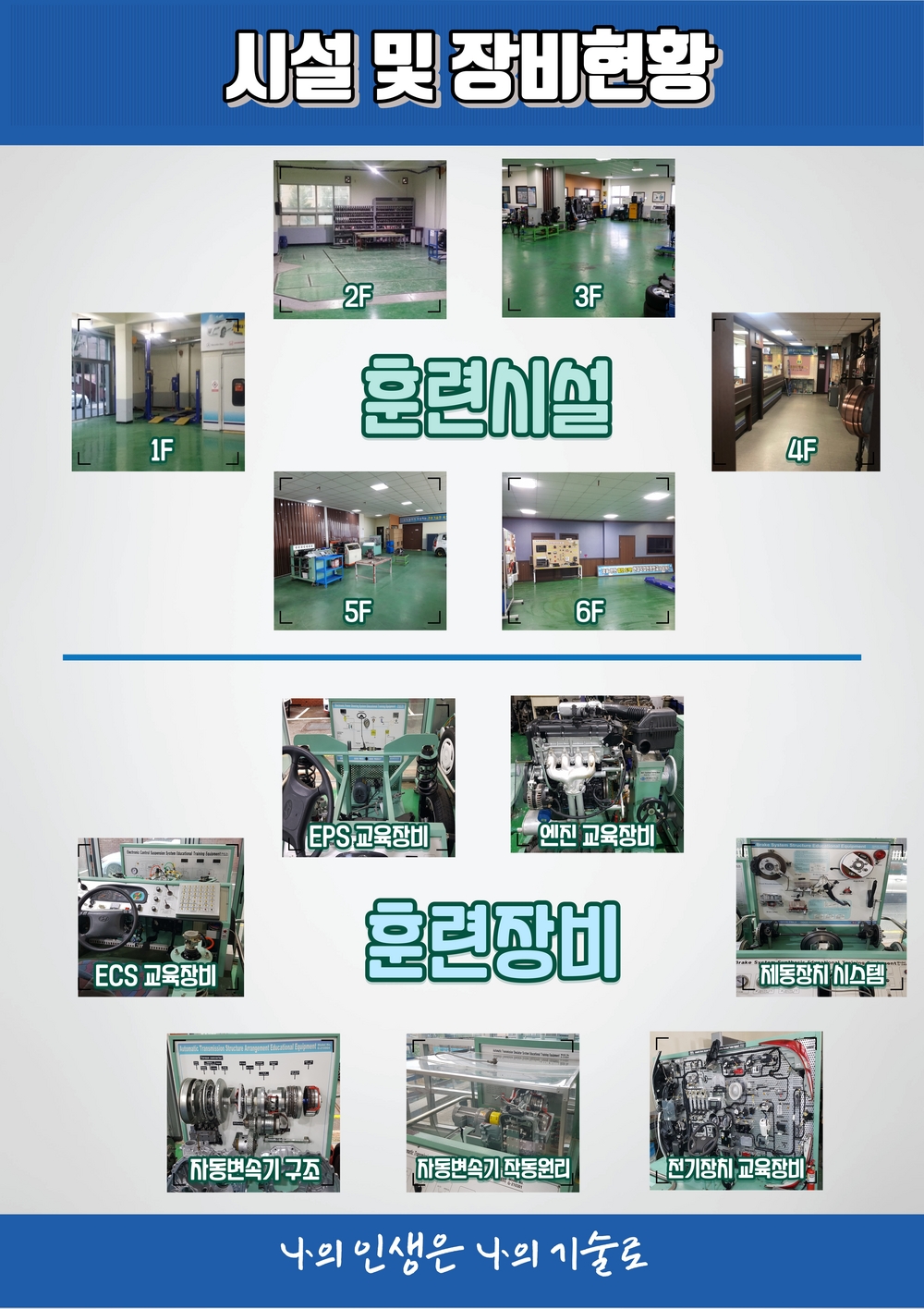 본교는 자동차정비(기관, 섀시, 전기전자장치, 전기자동차, 하이브리드자동차정비) , 전기내선공사, 산업안전관리 구직자 및 재직자 양성 교육훈련 기관입니다