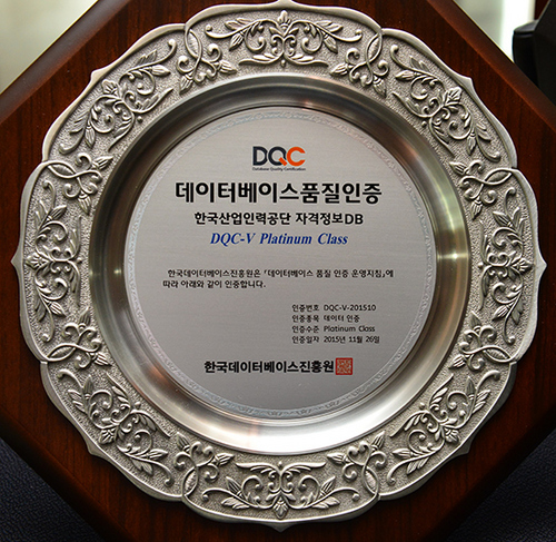 공단에서 운용하는 자격정보DB는 국가자격시험 접수부터 자격증 발급까지 원스톱으로 제공하고 있는 Q-net의 핵심정보로 99.99%의 데이터 정합률을 달성하는 등 대국민 공공DB로서 가치를 인정받아 데이터인증(DQC-V)분야의 최고등급인 플래티넘(Platinum) 등급을 획득했다.