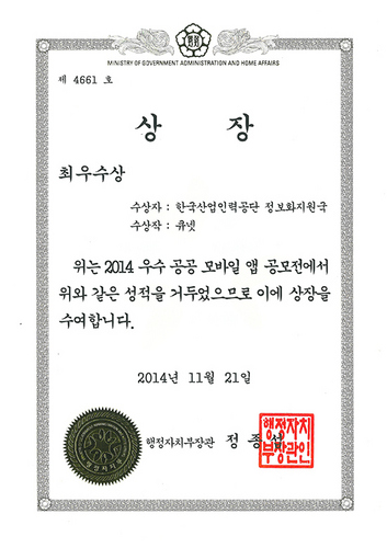 2014 우수 공공 모바일 앱 공모전 최우수상