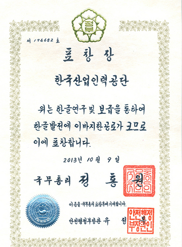 제567돌 한글날 한글연구 및 보급 공로 표창