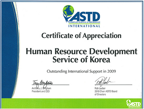 공단은 인적자원개발 컨퍼런스의 효율적 홍보와 국제적 위상 제고를 위하여 미국 최대의 HR전문기관인 ASTD와 컨퍼런스 상호 협약을 체결하고 HRD전문기관 인증을 받았다. ASTD는 1944년 설립돼 미국 워싱턴D.C.에 본부를 두고 있는 세계 최대의 HR기관으로 전 세계 100여개국 7만여명 규모의 HR 전문가로 구성돼 있다.