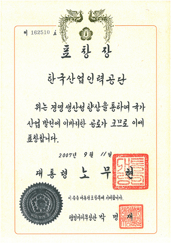 제31회 국가생산성혁신대회 대통령 표창