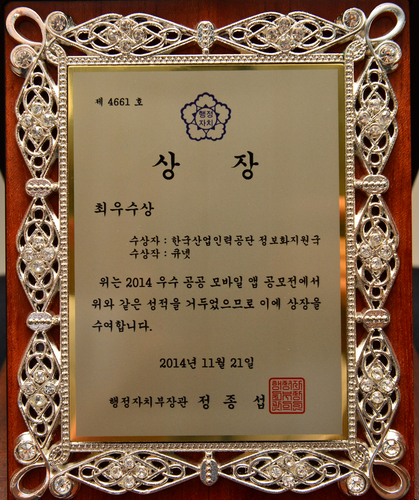 2014 우수 공공 모바일 앱 공모전 최우수상