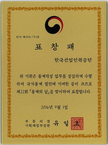 공단은 제22회 통계의 날을 맞아 국가기술자격통계연보 발간을 통하여 국가통계 발전에 기여한 공을 인정받아 부총리 겸 기획재정부장관 표창을 수상했다. 공단은 1984년부터 매년 국가기술자격 응시자 및 취득자 정보를 담은 <국가기술자격통계>를 발간하여 정부 및 민간부문이 공공정보를 활용할 수 있도록 지원하고 있다.