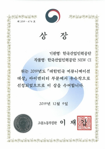 2019년도 대한민국커뮤니케이션 대상 아이덴티티 부문에서 우수작으로 선정