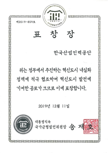 혁신도시 내실화 정책에 적극 협조를 통한 혁시도시 발전에 기여