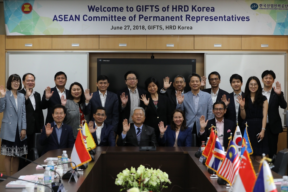 한국산업인력공단(이사장 김동만)은 27일, 글로벌숙련기술진흥원(인천 부평구)에서 주아세안 상주대표위원회(Committee of Permanent Representatives, CPR)와 정부의 신남방 정책과 연계한 한-아세안 협력강화 방안을 논의했다. 이날 면담에서는 ▲한국의 직업기술교육훈련(TVET) 우수사례 ▲ASEAN+3 HRD포럼 협력 성과 ▲향후 TVET분야 아세안 협력 신규 사업 추진 방안 등을 공유하고 한-아세안 협력을 더욱 강화해 나가기로 다짐했다.