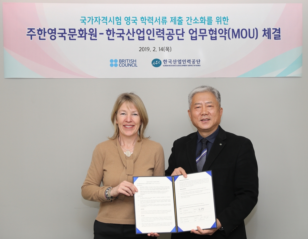 한국산업인력공단(이사장 김동만)은 14일, 주한영국문화원(원장 샘 하비)과 국가자격시험의 영국학력서류 제출 간소화를 위한 업무협약을 체결했다.