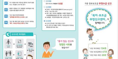 각종 정부보조금 부정수급 신고! 「복지·보조금 부정신고센터」가 함께 합니다